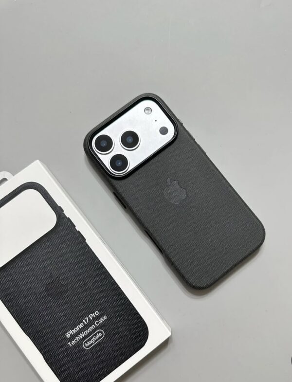 Sa texture tissée premium offre une sensation douce et luxueuse, tandis que son noir profond apporte un look minimaliste et professionnel à votre iPhone.